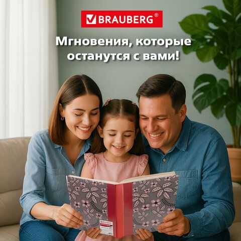 Фотоальбом BRAUBERG на 200 фото 10х15 см, твердая обложка, "Флора", серый с красным, 391121