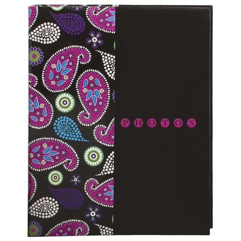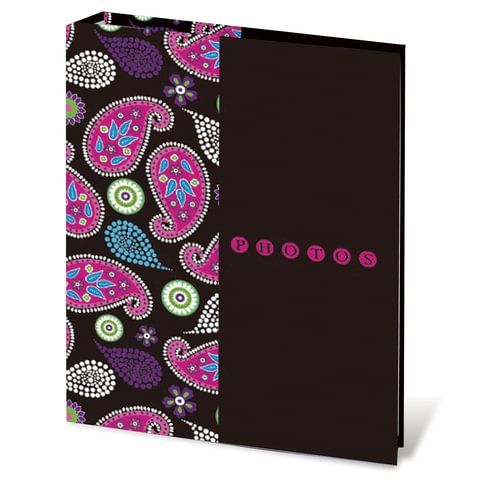 Фотоальбом BRAUBERG на 200 фотографий 10х15 см, твердая обложка, "Пейсли", черный с розовым, 390668