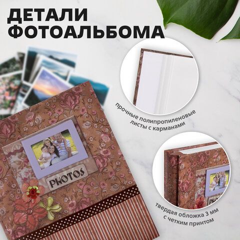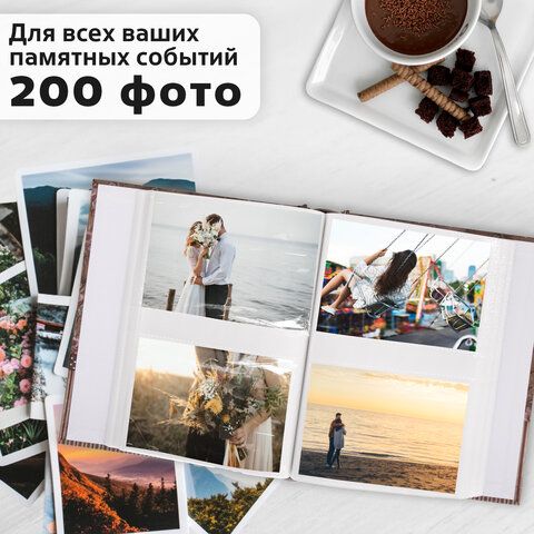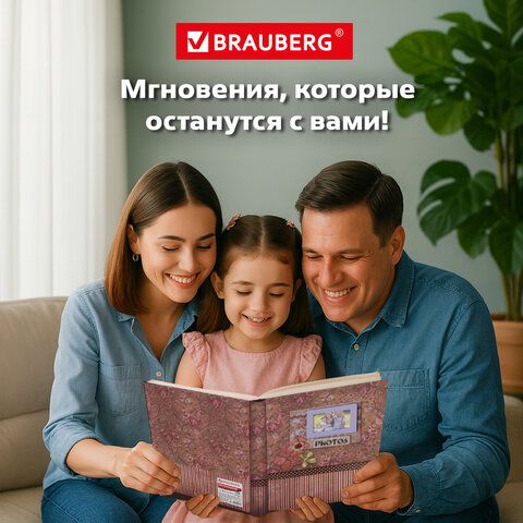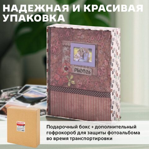 Фотоальбом BRAUBERG на 200 фотографий 10х15 см, твердая обложка, "Семья", бокс, красно-коричневый, 390673