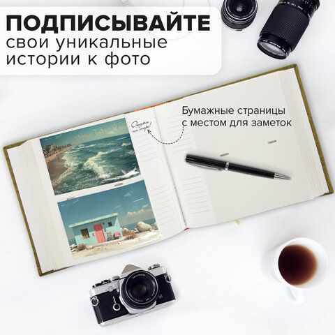 Фотоальбом BRAUBERG на 300 фото 10х15 см, ткань, хаки, 391188
