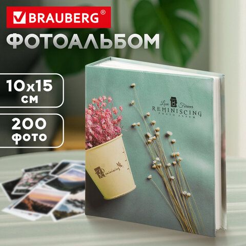 Фотоальбом BRAUBERG "На бирюзовом фоне" на 200 фото 10х15 см, твердая обложка, термосварка, 391166