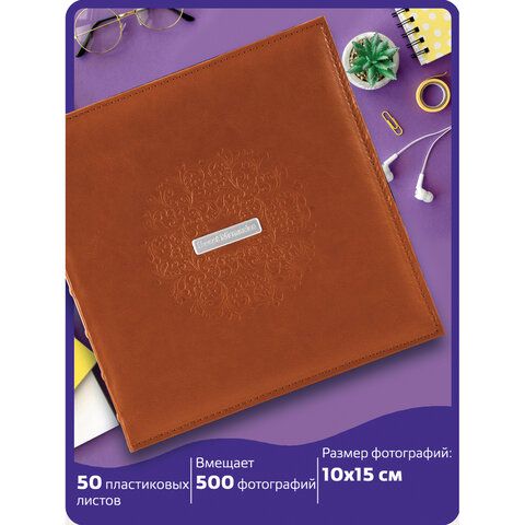 Фотоальбом BRAUBERG "Omega" на 500 фото 10х15 см, под гладкую кожу, коричневый, 391181