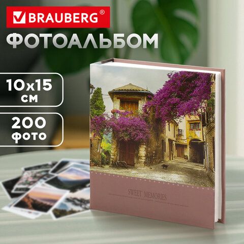 Фотоальбом BRAUBERG "Цветущая улица" на 200 фото 10х15 см, твердая обложка, термосварка, 391163