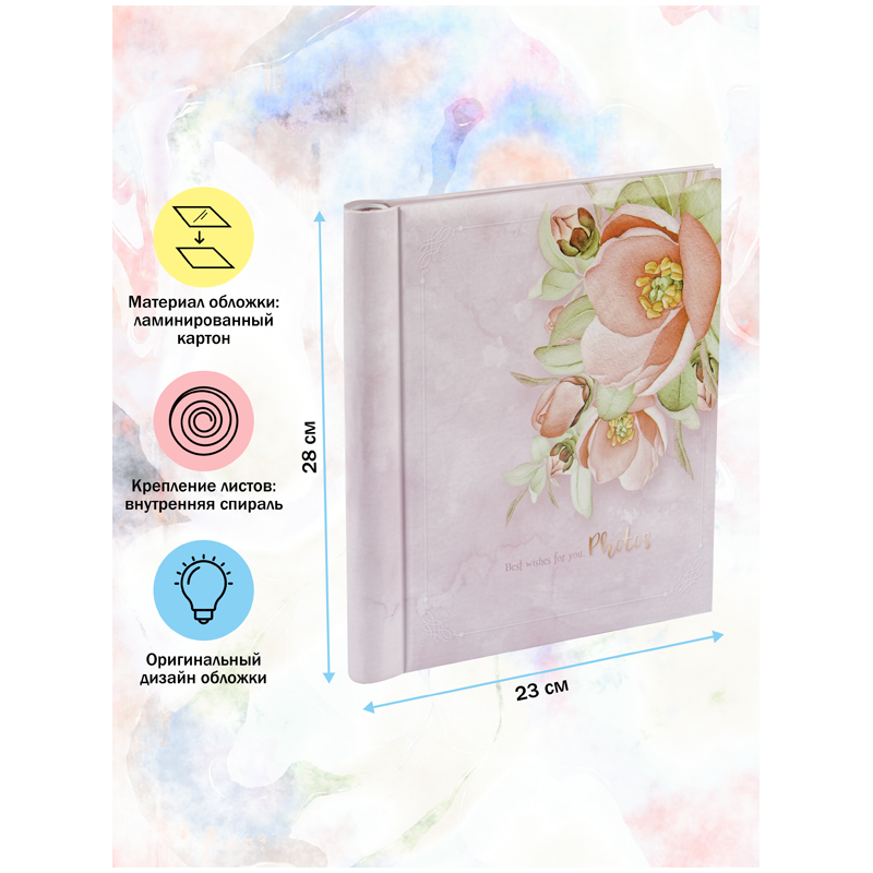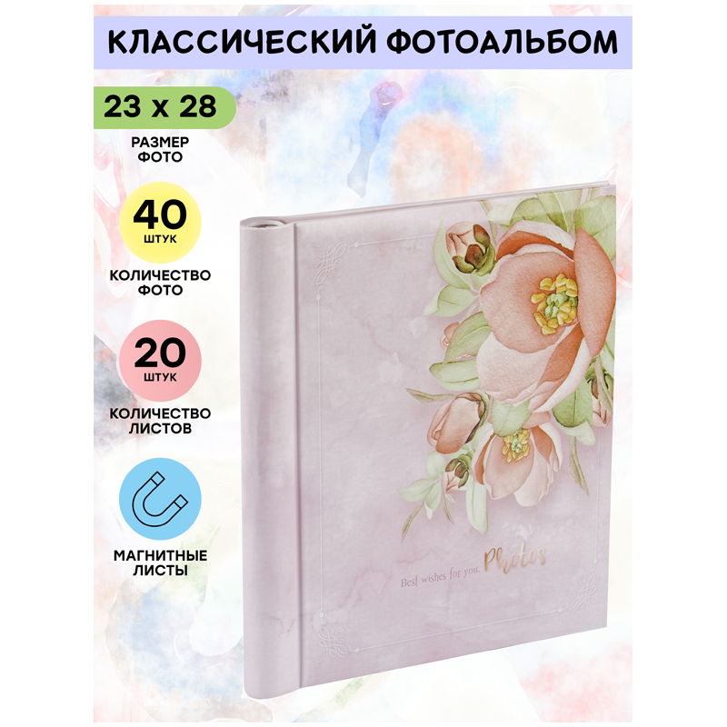 Фотоальбом магнитный 20 листов 23*28см, внутренняя спираль, ArtSpace "Flowery"