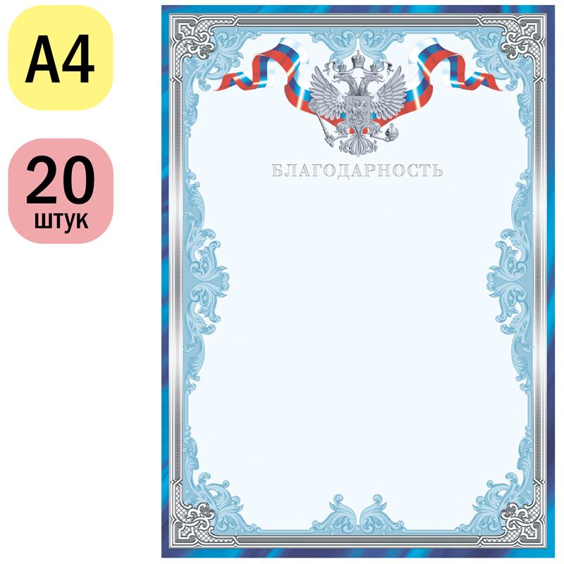 Благодарность А4, ArtSpace, мелованный картон, тиснение фольгой, синяя