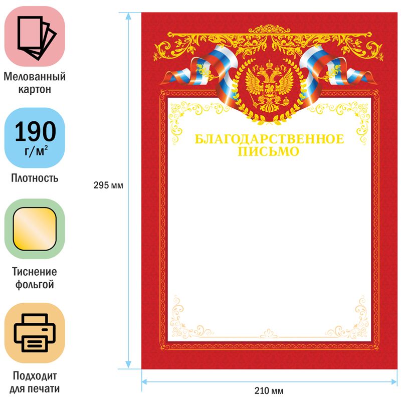 Благодарственное письмо А4, ArtSpace, мелованный картон, тиснение фольгой