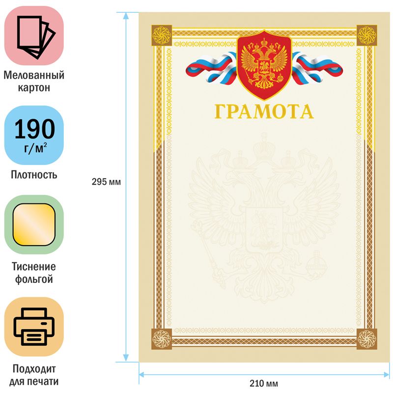 Грамота А4, ArtSpace, мелованный картон, тиснение фольгой, бежевая