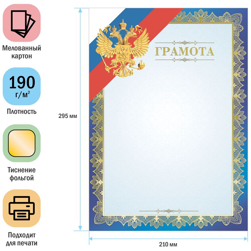 Грамота А4, ArtSpace, мелованный картон, тиснение фольгой, синяя