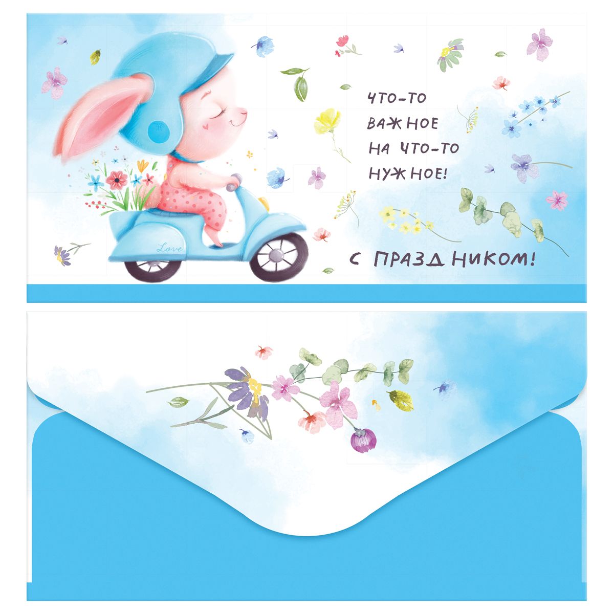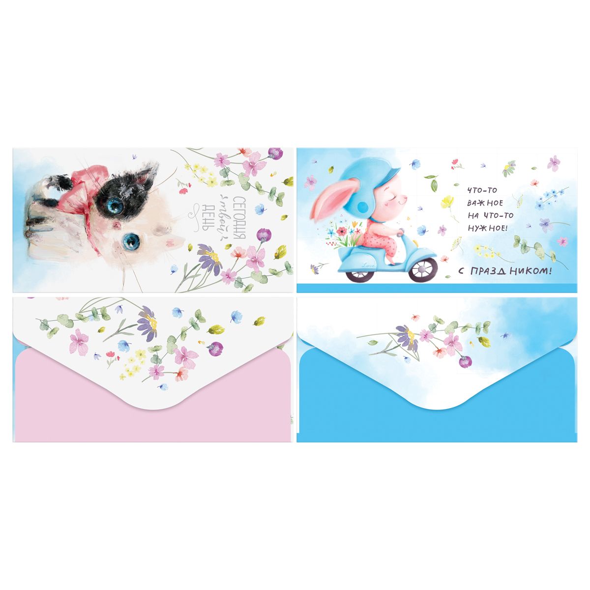 Размер конверта — 85*164 мм. Он сделан из плотного картона с матовой ламинацией. Дизайн с милыми животными и забавными надписями поднимет настроение. Универсальный конверт подходит для разных праздников.