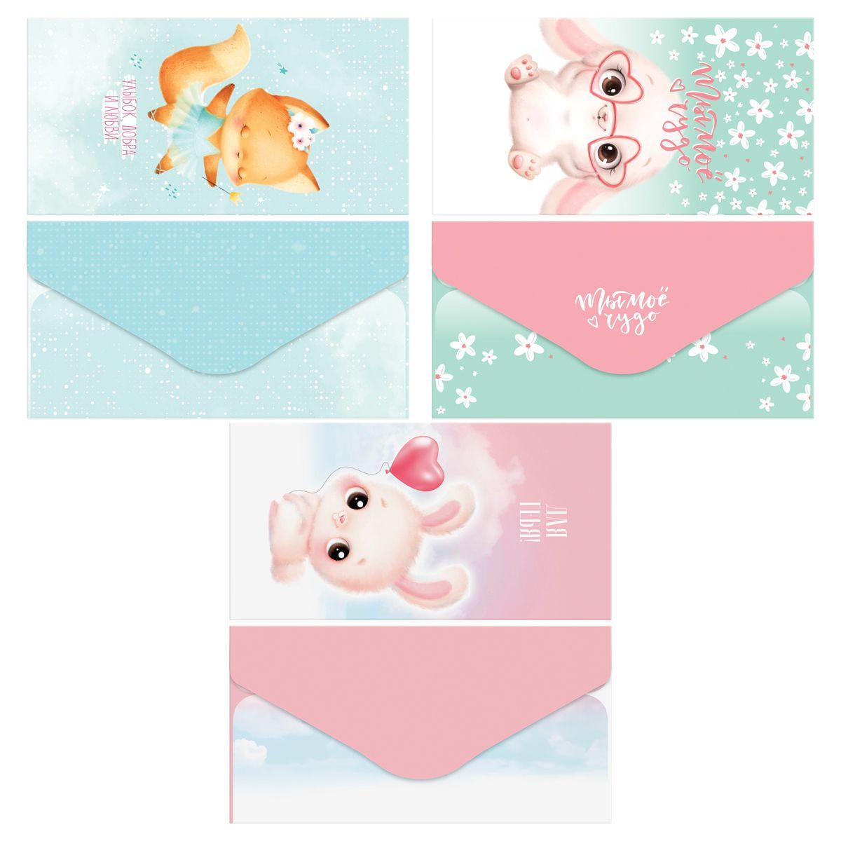 Конверт для денег MESHU "Милые друзья" 85*164мм, глянцевая ламинация, 3 дизайна