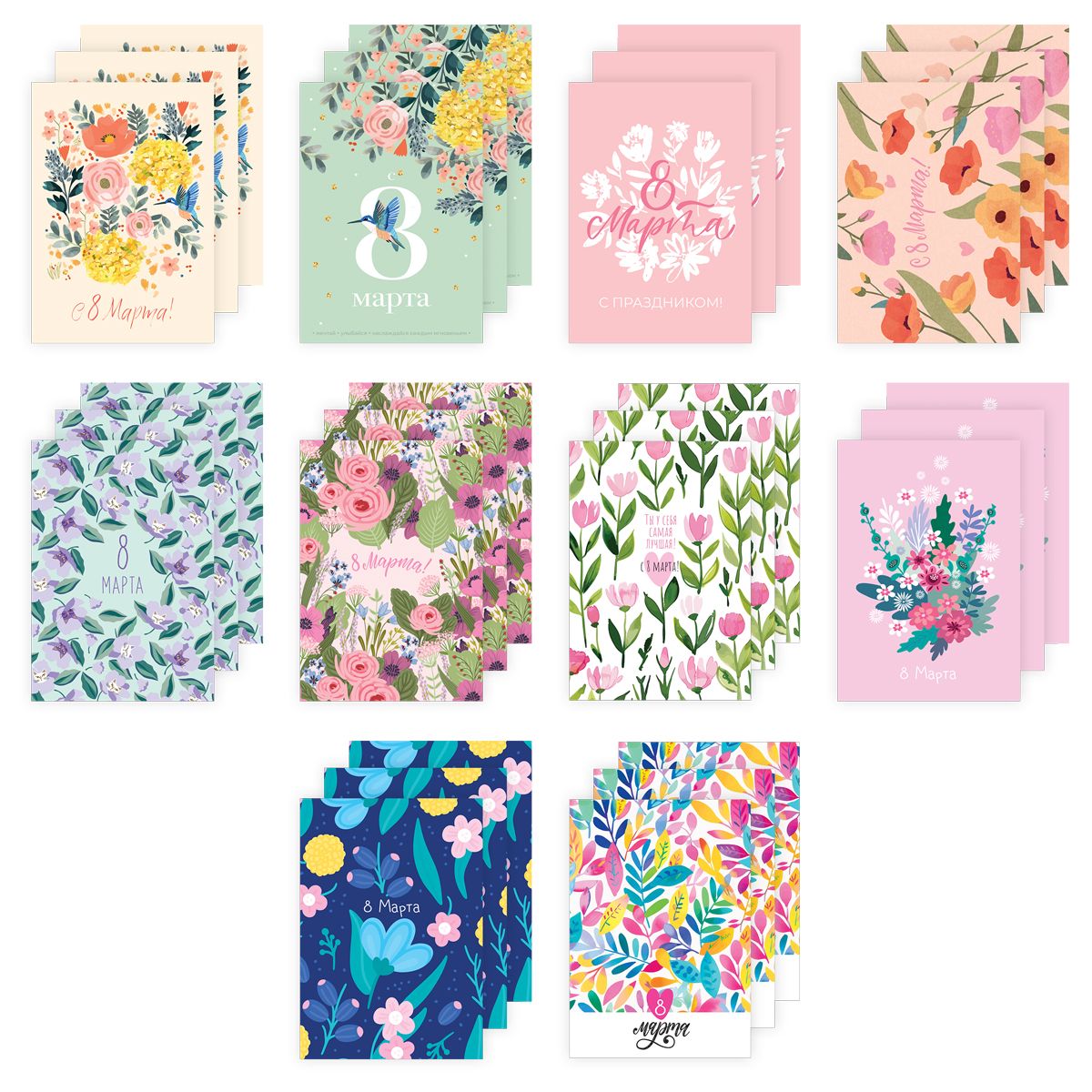 Набор открыток MESHU "Women's day" 30шт., глянцевая ламинация
