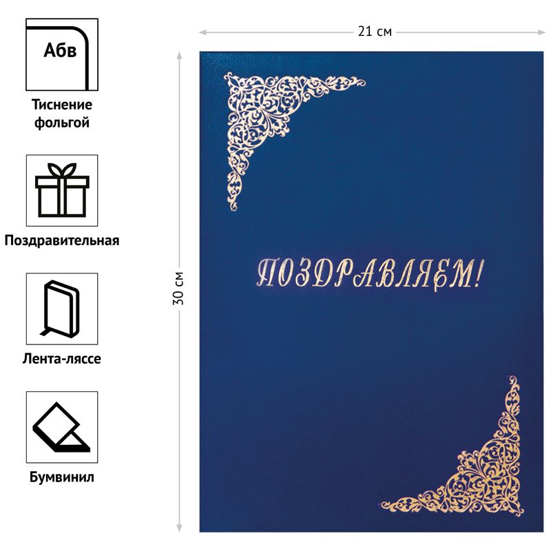 Папка адресная "Поздравляем!" OfficeSpace, 220*310, бумвинил, синий, инд. упаковка