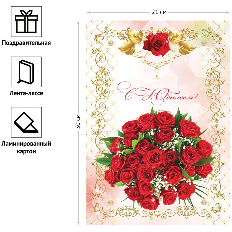 Папка адресная "С юбилеем" OfficeSpace, А4, ламинированная, инд. упаковка