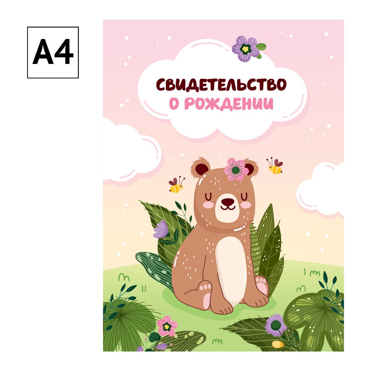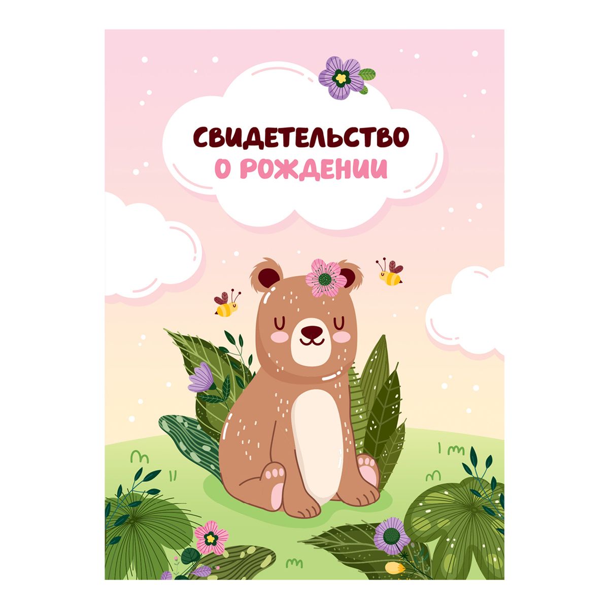 Папка адресная Свидетельство о рождении OfficeSpace "Медвежонок", А4, ламинированная, для девочек