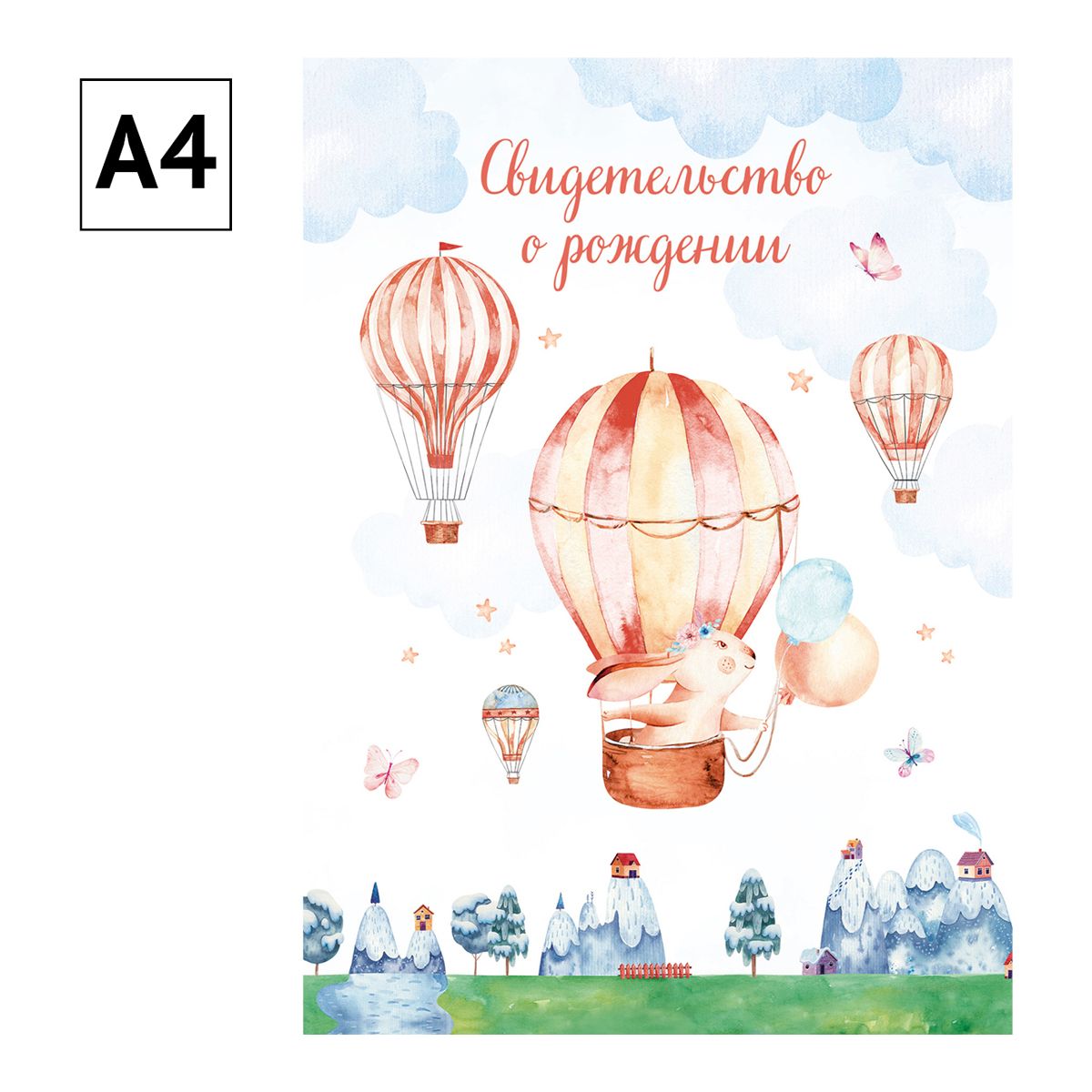 Папка адресная Свидетельство о рождении OfficeSpace "Зайчик", А4, ламинированная, для девочек