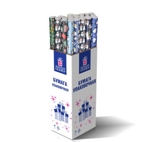 Бумага упаковочная новогодняя "Snow Fun", 70х100 см, 10 дизайнов ассорти, ЗОЛОТАЯ СКАЗКА, 591911
