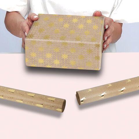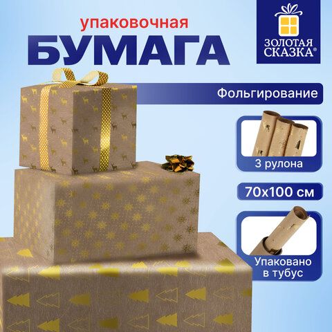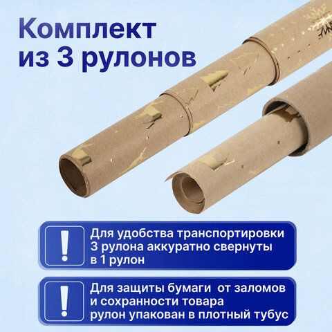Бумага упаковочная С ЭФФЕКТАМИ новогодняя НАБОР 3 шт. "Winter Kraft", 70х100 см, ЗОЛОТАЯ СКАЗКА, 591936