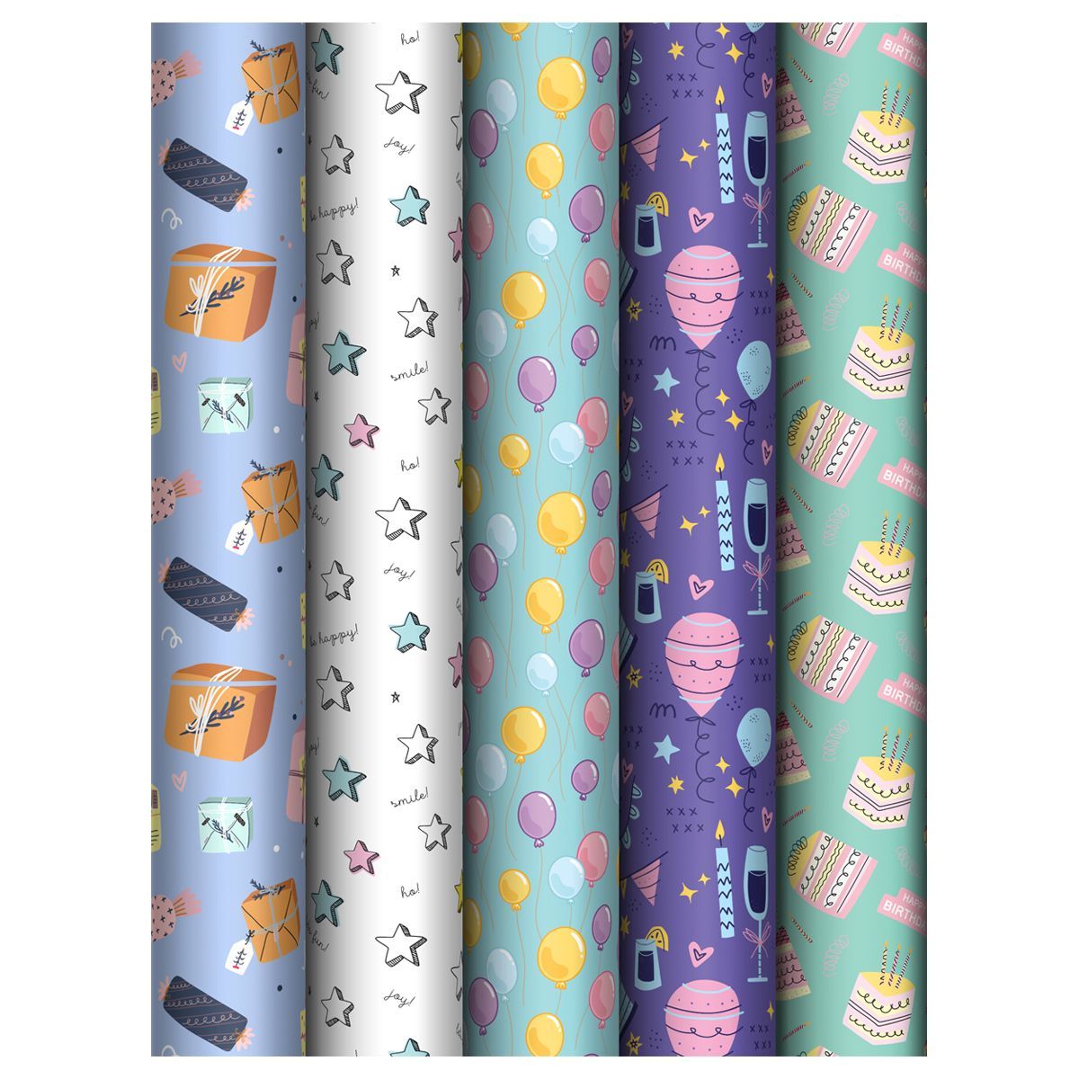 Упаковочная бумага глянц. 70*100см, MESHU "Birthday mood", 80 г/м2, ассорти, 5 дизайнов