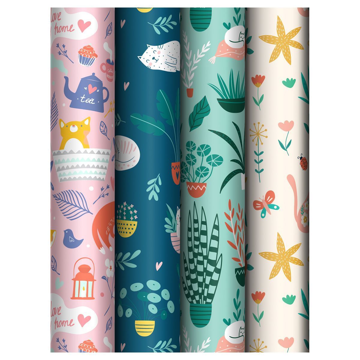Упаковочная бумага глянц. 70*100см, MESHU "Cozy home", 80 г/м2, ассорти, 4 дизайна