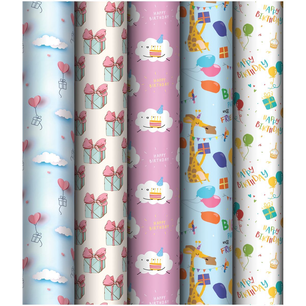 Упаковочная бумага глянц. 70*100см, MESHU "День Рождения", 80г/м2, ассорти 5 дизайнов