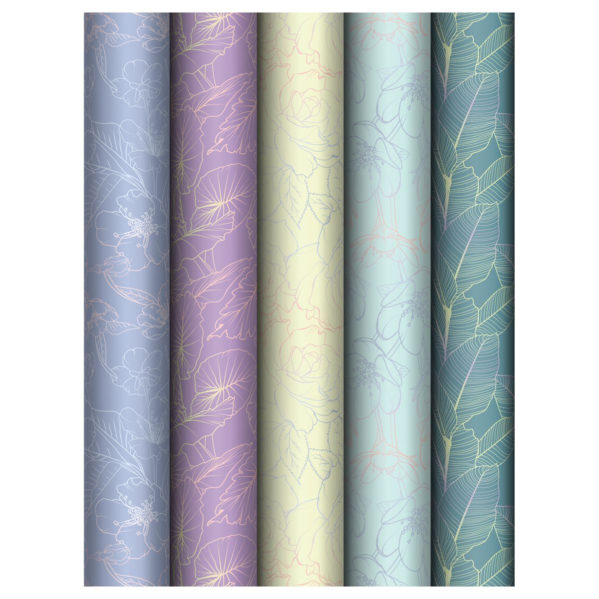 Упаковочная бумага глянц. 70*100см, MESHU "Grace twigs", 80 г/м2, ассорти, 5 дизайнов