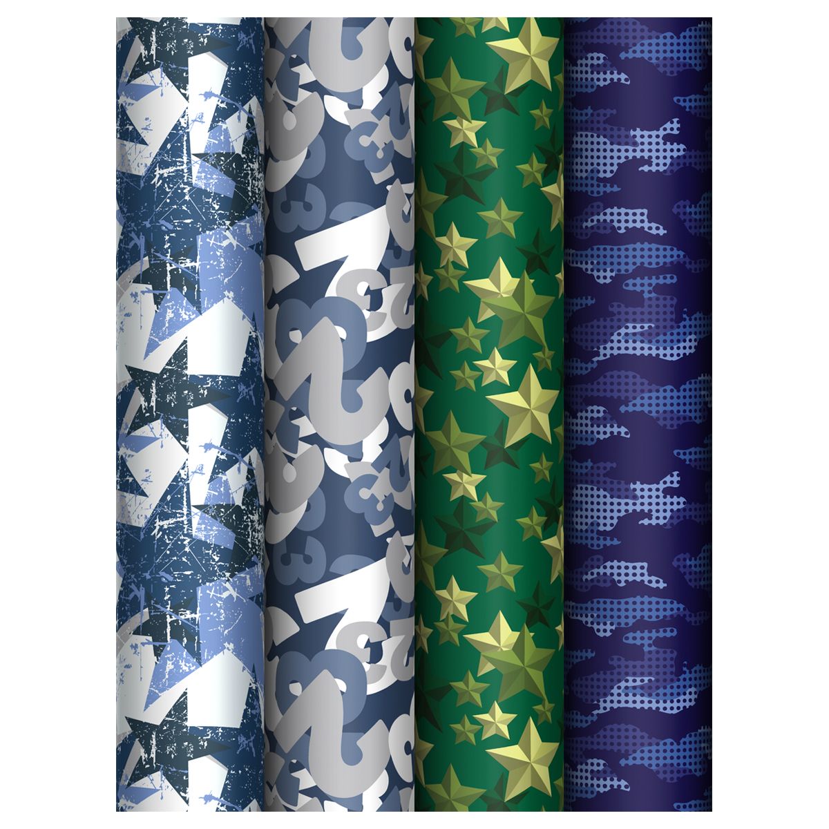 Упаковочная бумага глянц. 70*100см, MESHU "Military", 80 г/м2, ассорти, 4 дизайна