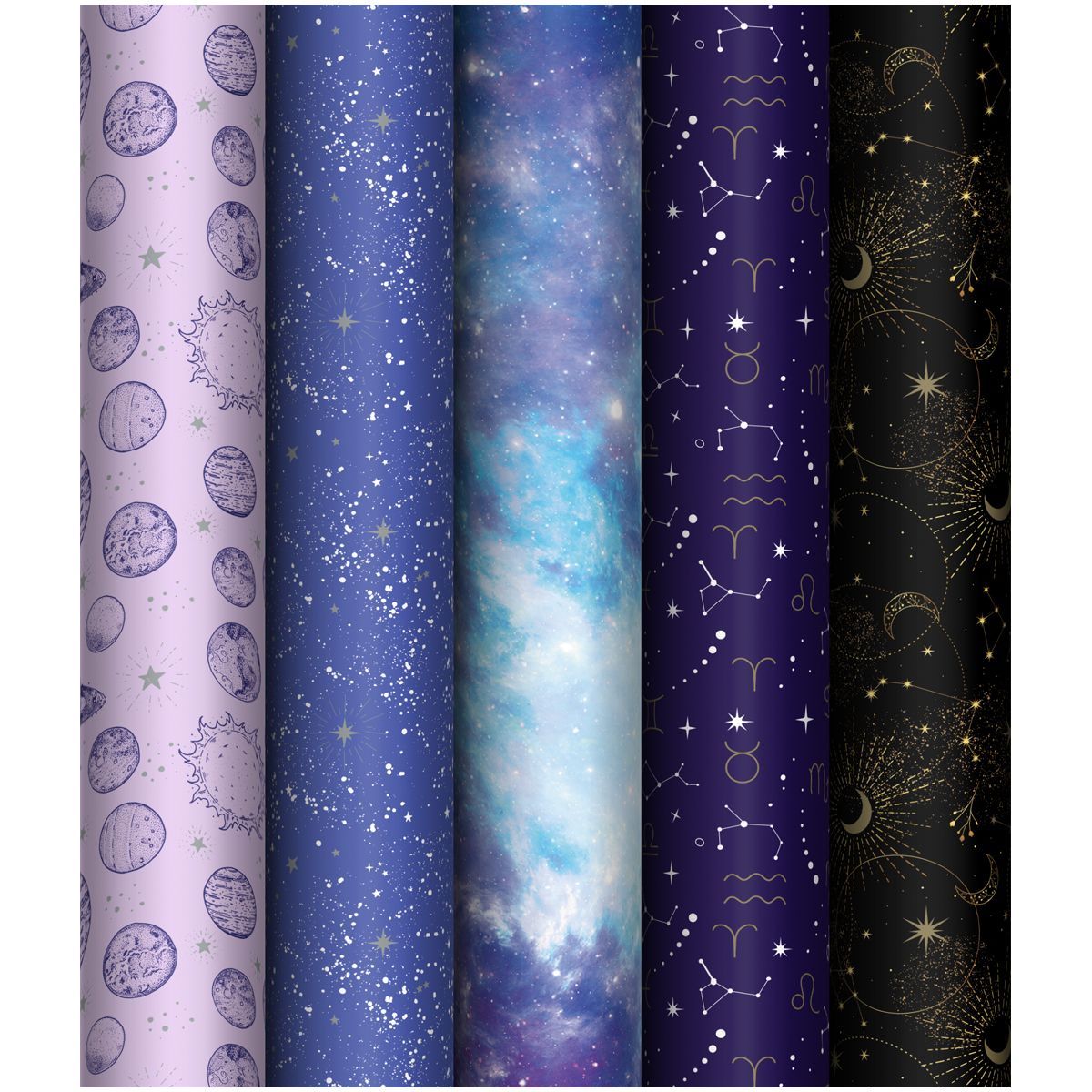 Упаковочная бумага глянц. 70*100см, MESHU "В глубинах космоса", 80г/м2, ассорти 5 дизайнов