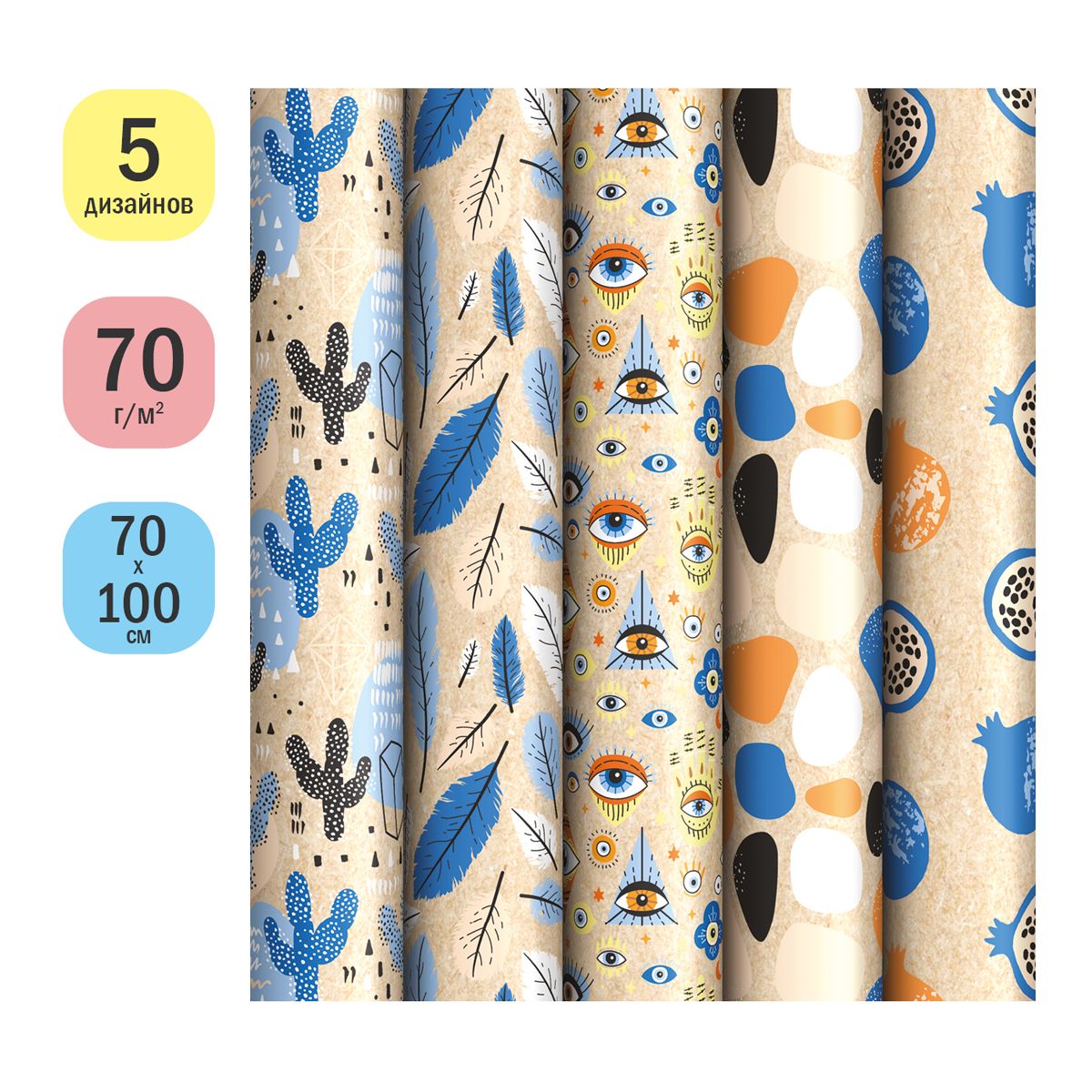 Упаковочная бумага крафт 70*100см, ArtSpace "Абстракция", 70г/м2, ассорти 5 дизайнов