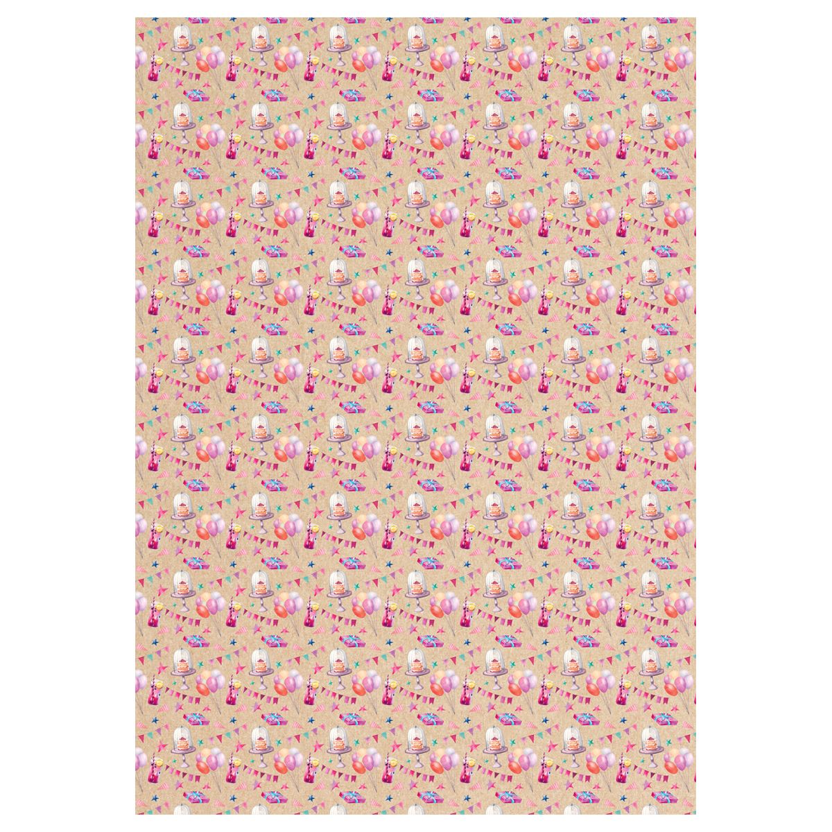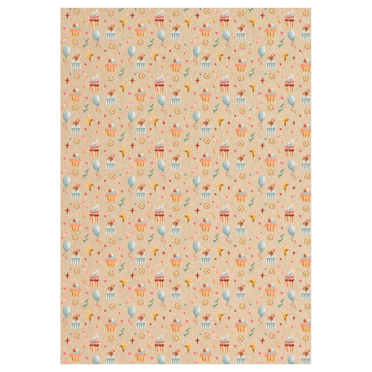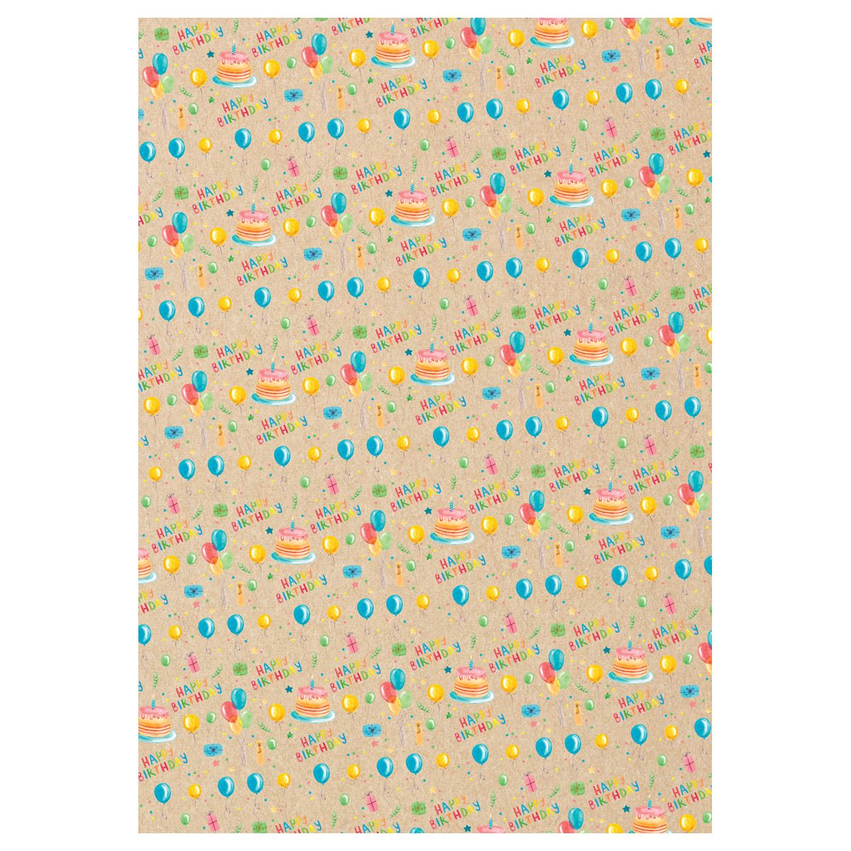 Упаковочная бумага крафт 70*100см, MESHU "Happy birthday", 70 г/м2, ассорти, 4 дизайна