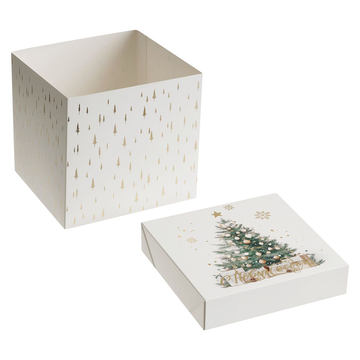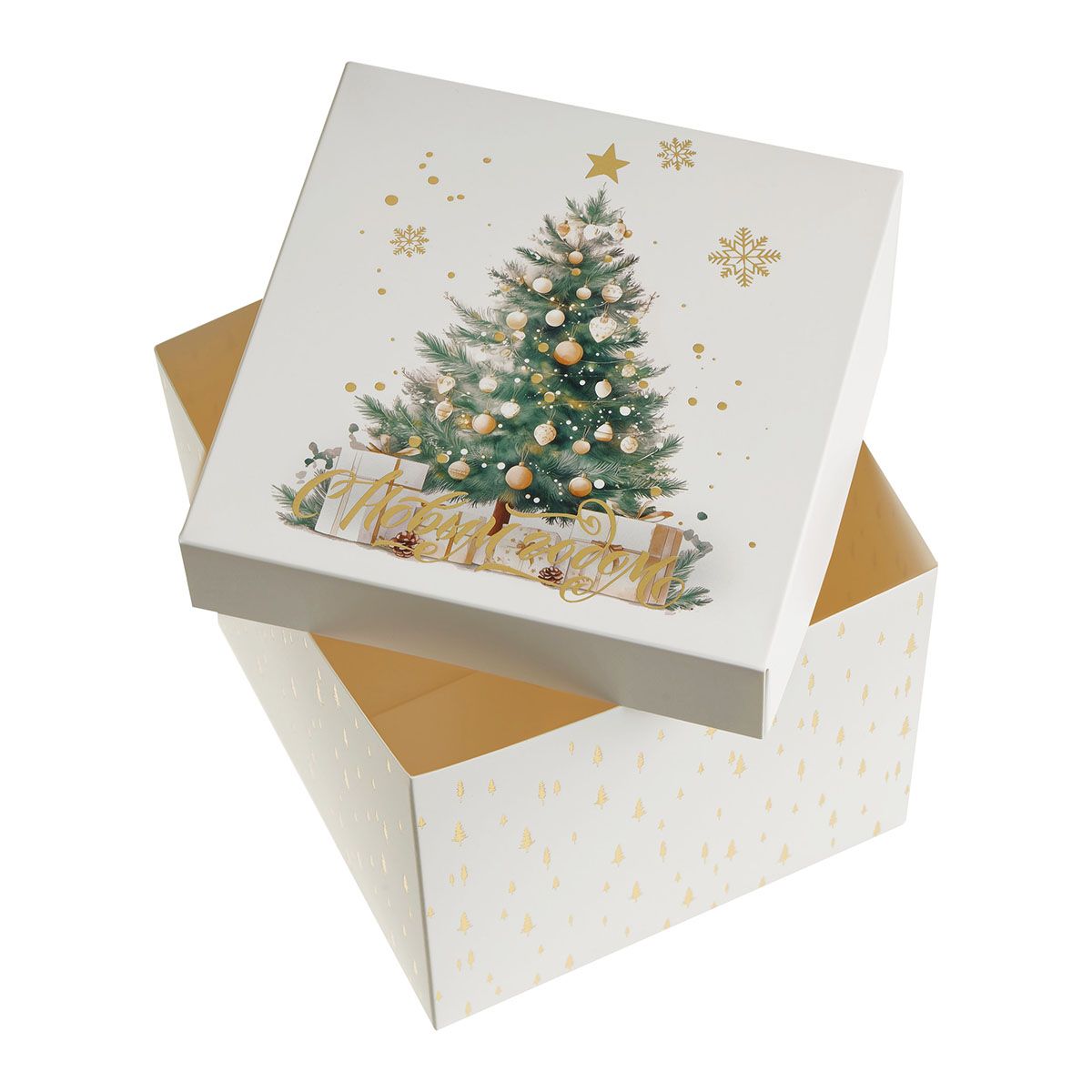 Коробка складная подарочная MESHU "Новый год", (15*15*15см), отд фольгой