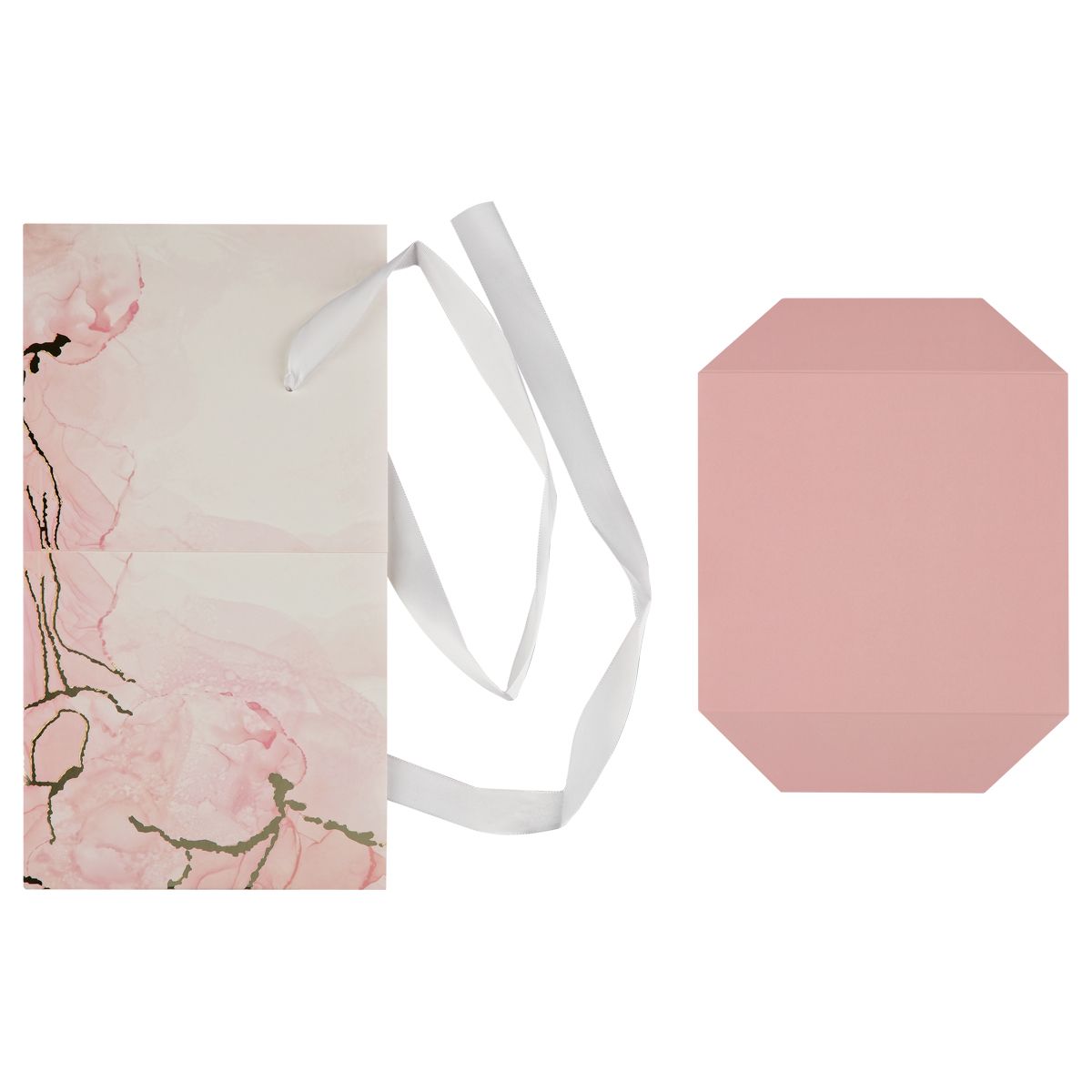 Коробка складная подарочная MESHU "Pink marble", (15*15*15см), с лентой, отд фольгой