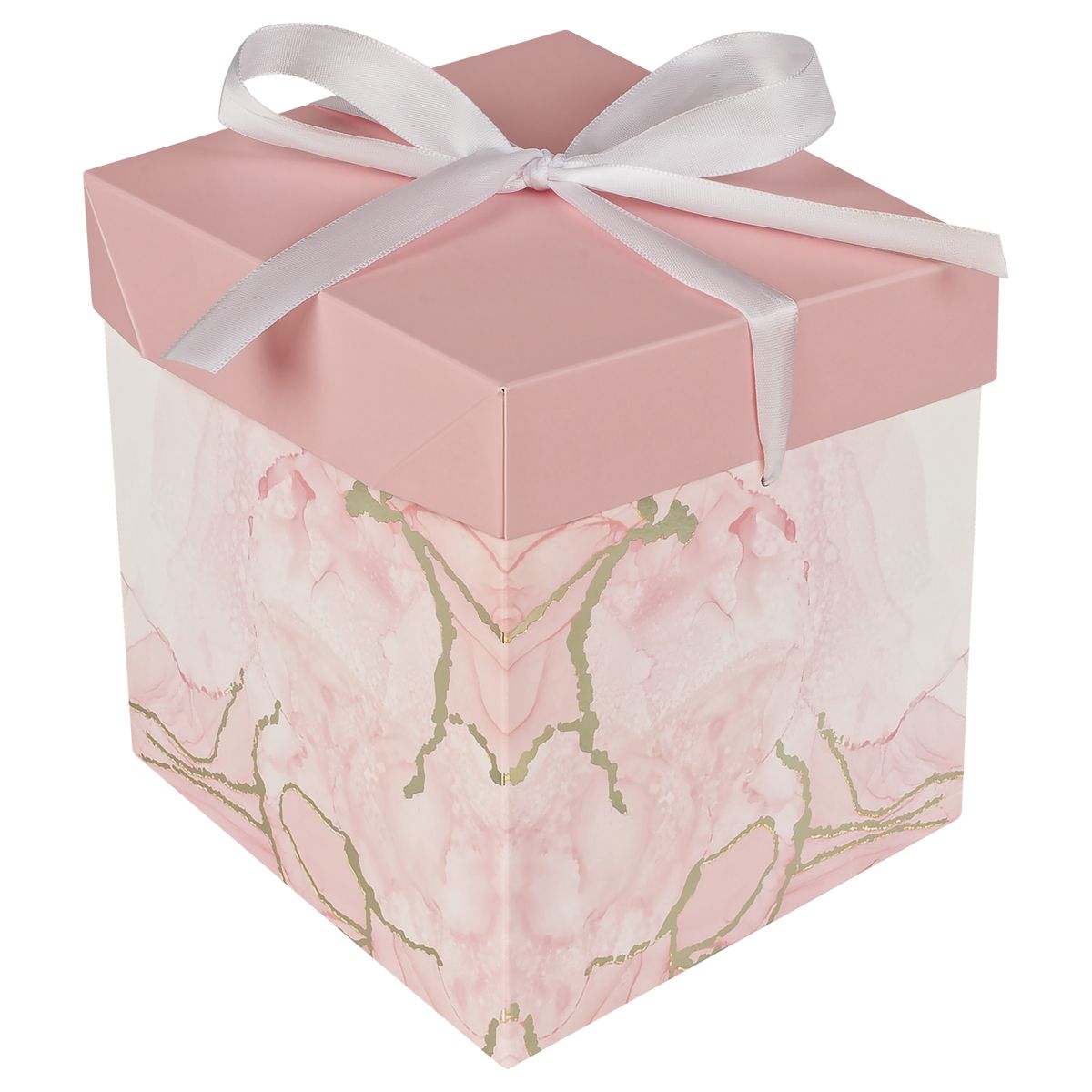 Коробка складная подарочная MESHU "Розовый мрамор", (15*15*15см), с лентой, отд фольгой