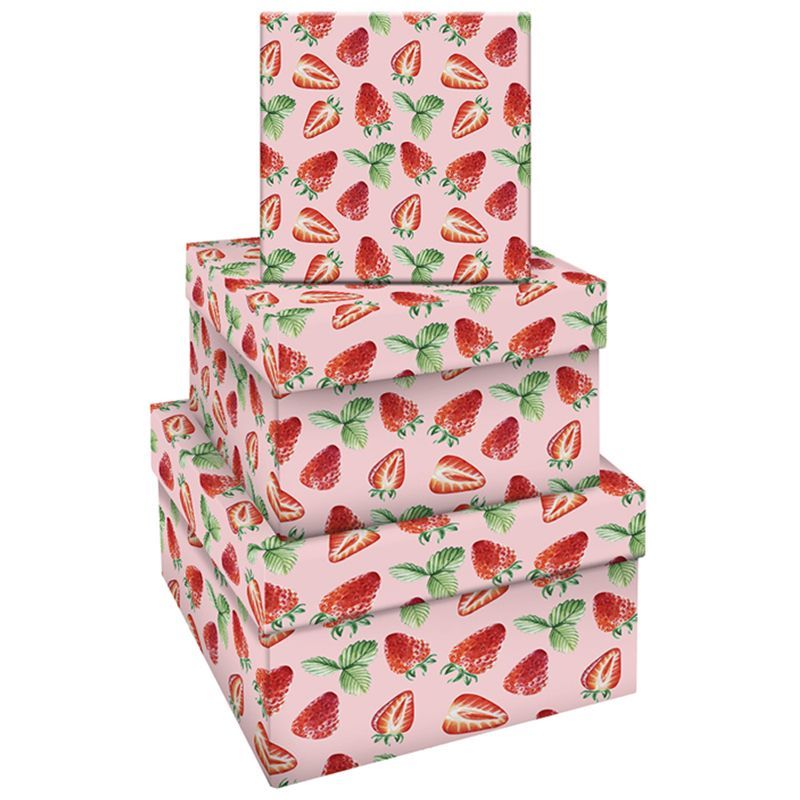 Набор квадратных коробок 3в1, MESHU "Strawberry", (19,5*19,5*11-15,5*15,5*9см)