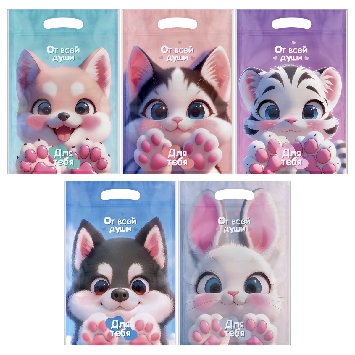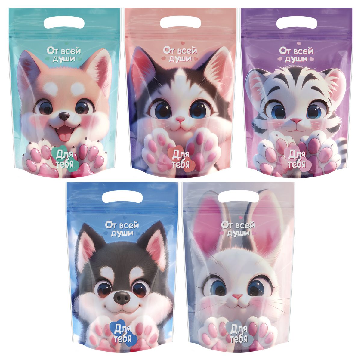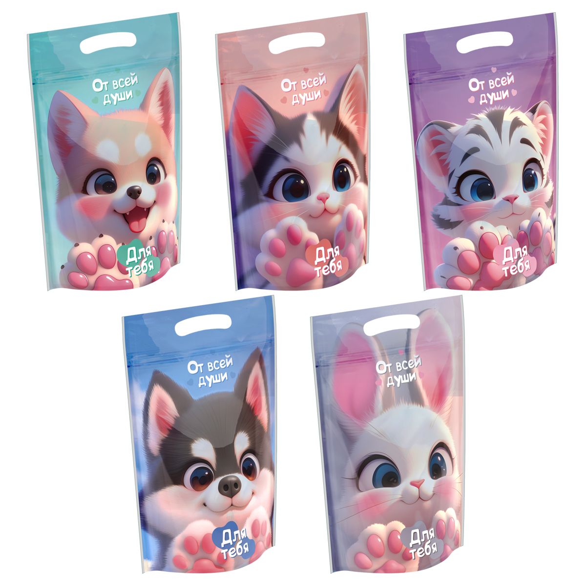 Набор подарочных пакетов 15*22 см, зип-лок, MESHU "Зверята", 35шт.