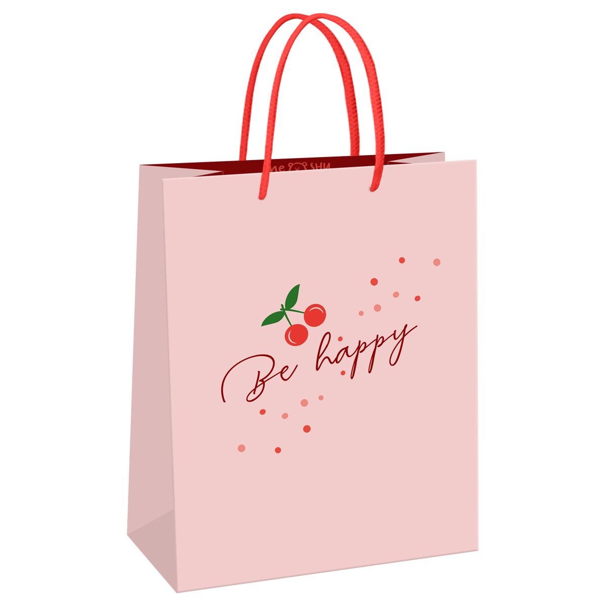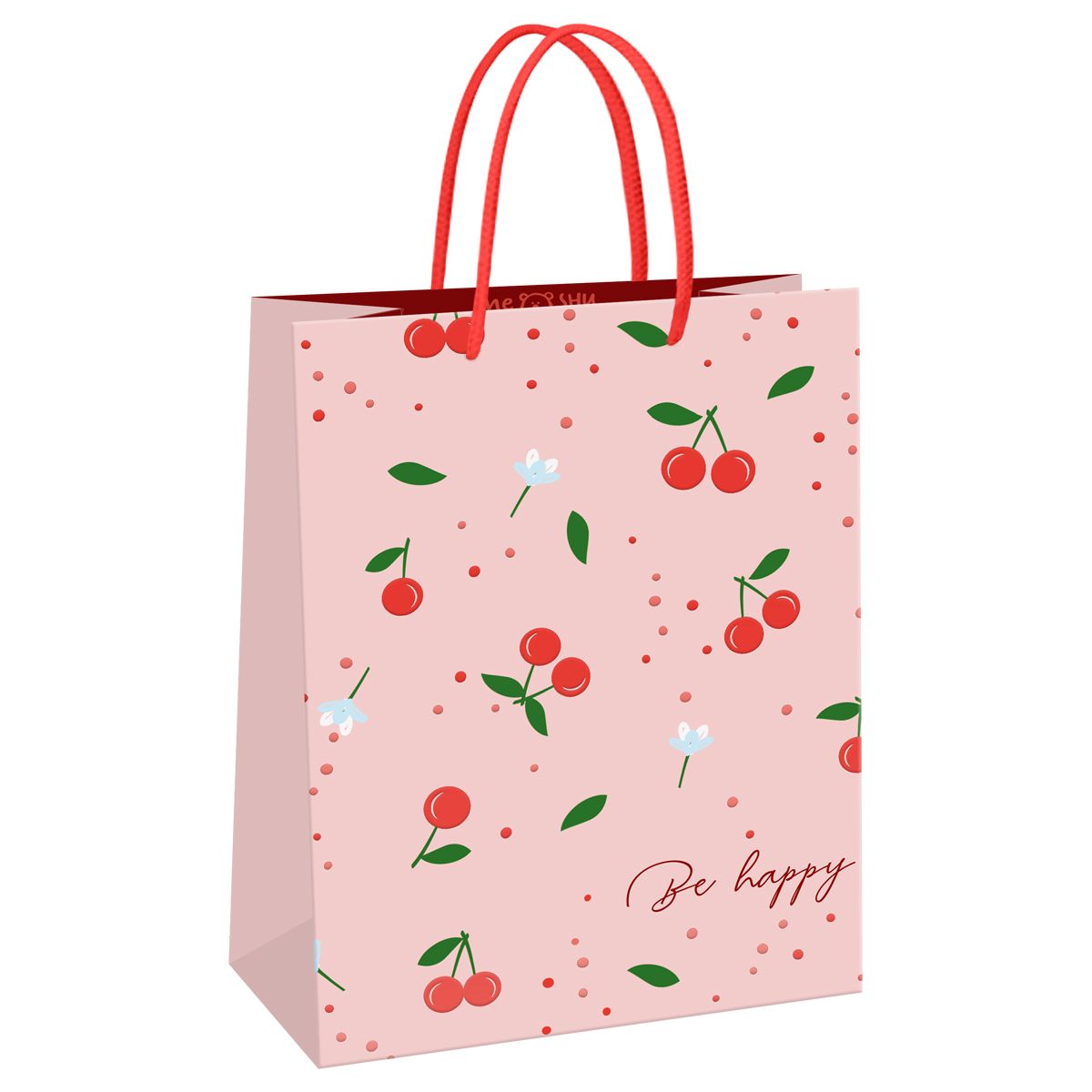 Пакет подарочный 11*14*6,5см MESHU "Cherry", блестки, матовая ламинация