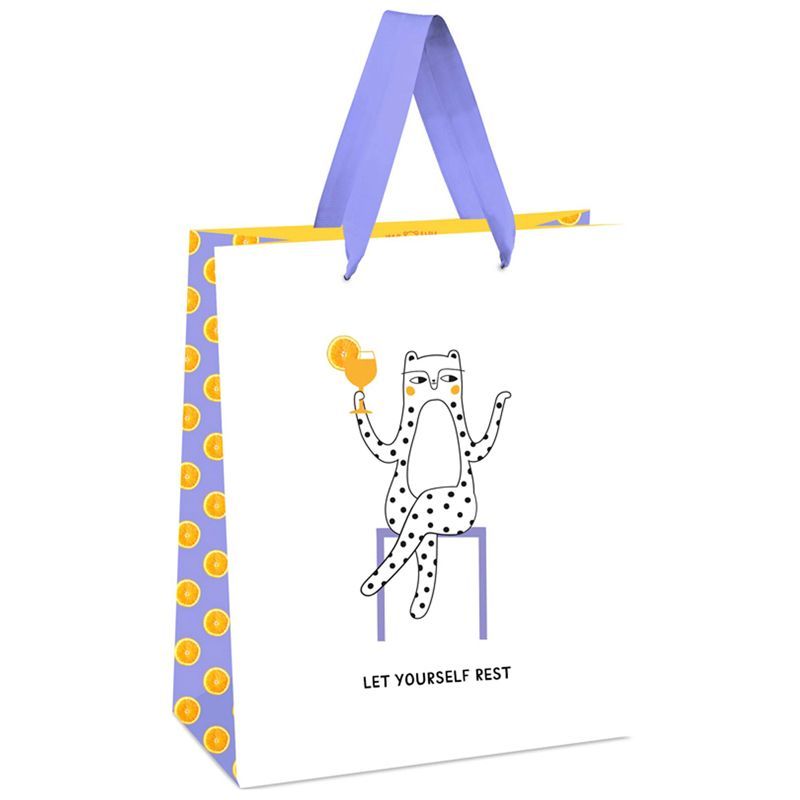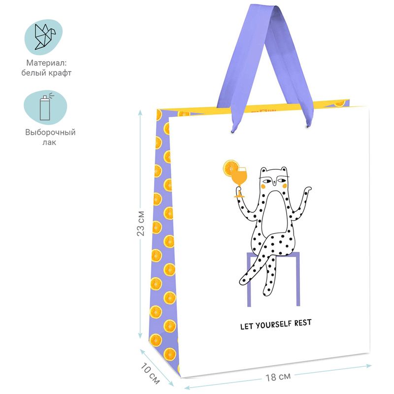 Пакет подарочный 18*23*10см MESHU "Lets yourself rest", выб. лак, белый крафт
