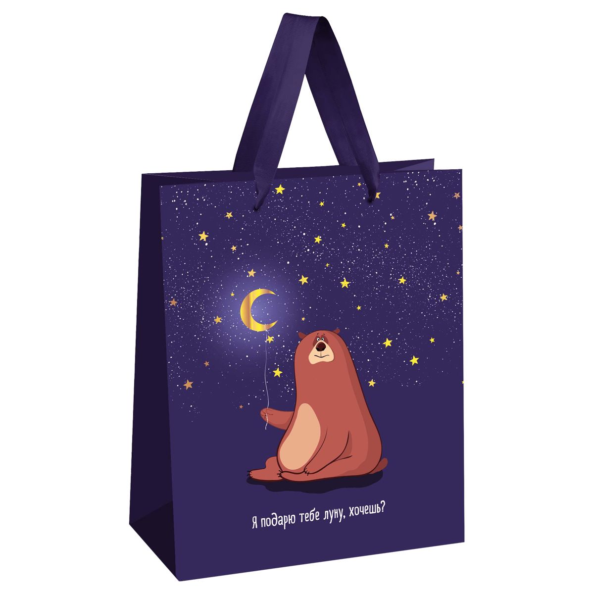 Пакет подарочный 18*23*10см MESHU "Я подарю тебе луну", отд. фольгой, выборочный лак, матовая ламинация