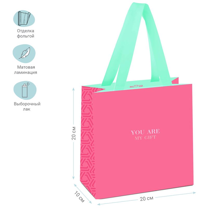 Пакет подарочный 20*20*10см MESHU "Bright crimson", отд. фольгой, выб. лак, матовая ламинация