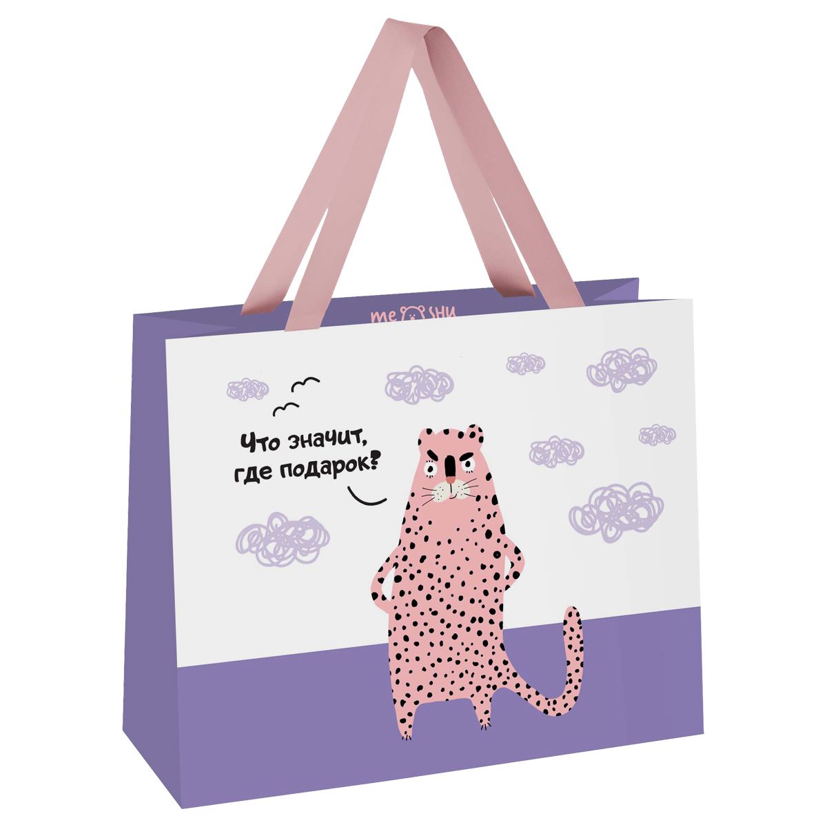 Пакет подарочный 23*18*10см MESHU "Что значит, где подарок", выборочный лак, матовая ламинация