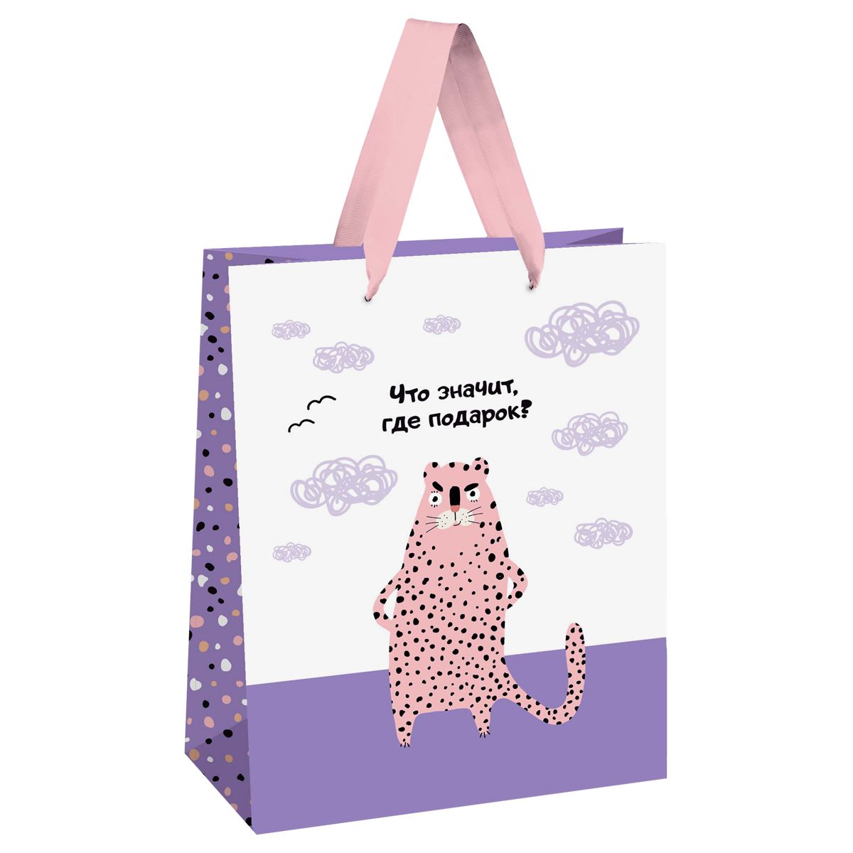 Пакет подарочный 26*32*12см MESHU "Что значит, где подарок", выборочный лак, матовая ламинация