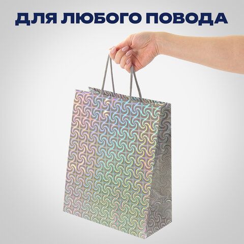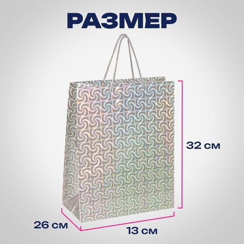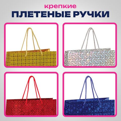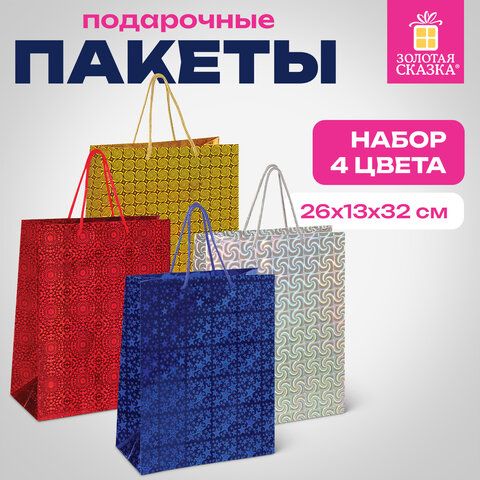 Пакет подарочный 32x26x13см (L) НАБОР 4шт, голография, ассорти 4 цвета, ЗОЛОТАЯ СКАЗК, 609734