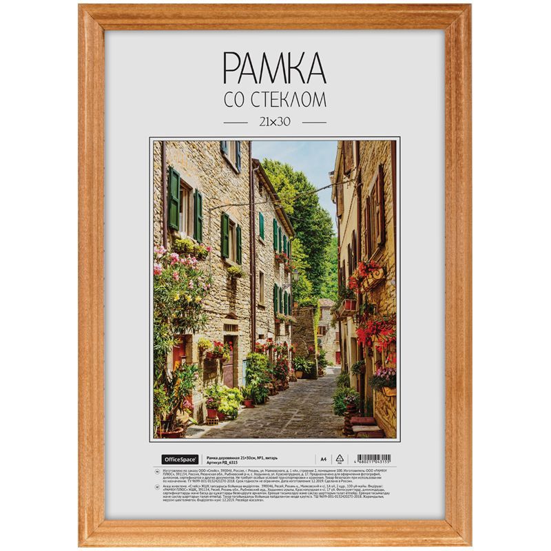 Рамка деревянная 21*30см, OfficeSpace, №1, янтарь