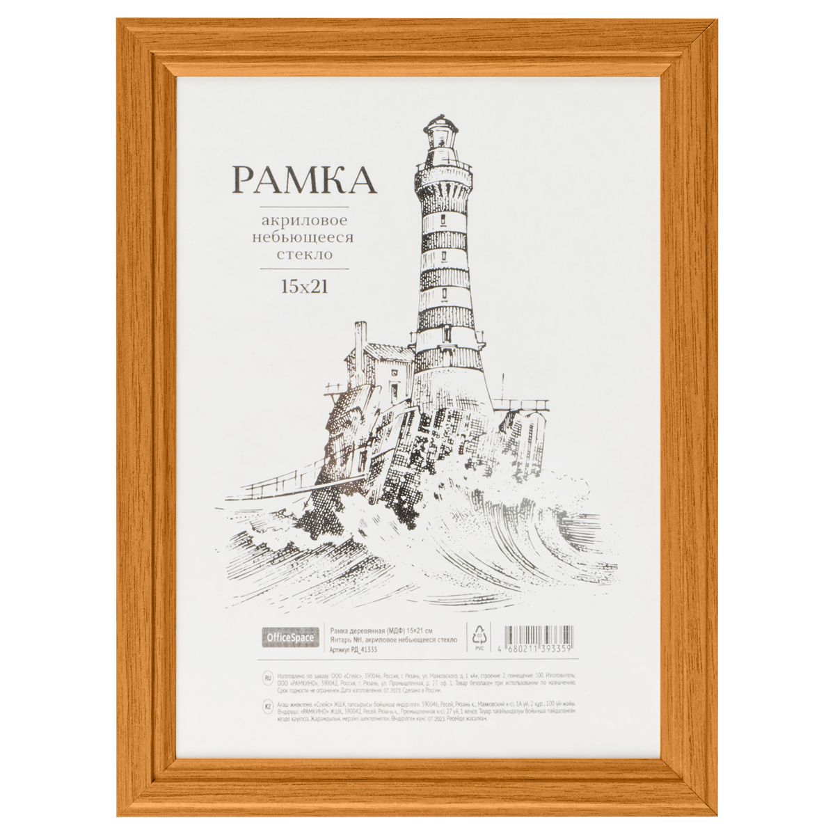 Рамка деревянная (МДФ) 15*21см, OfficeSpace, №1, акриловое небьющееся стекло, янтарь