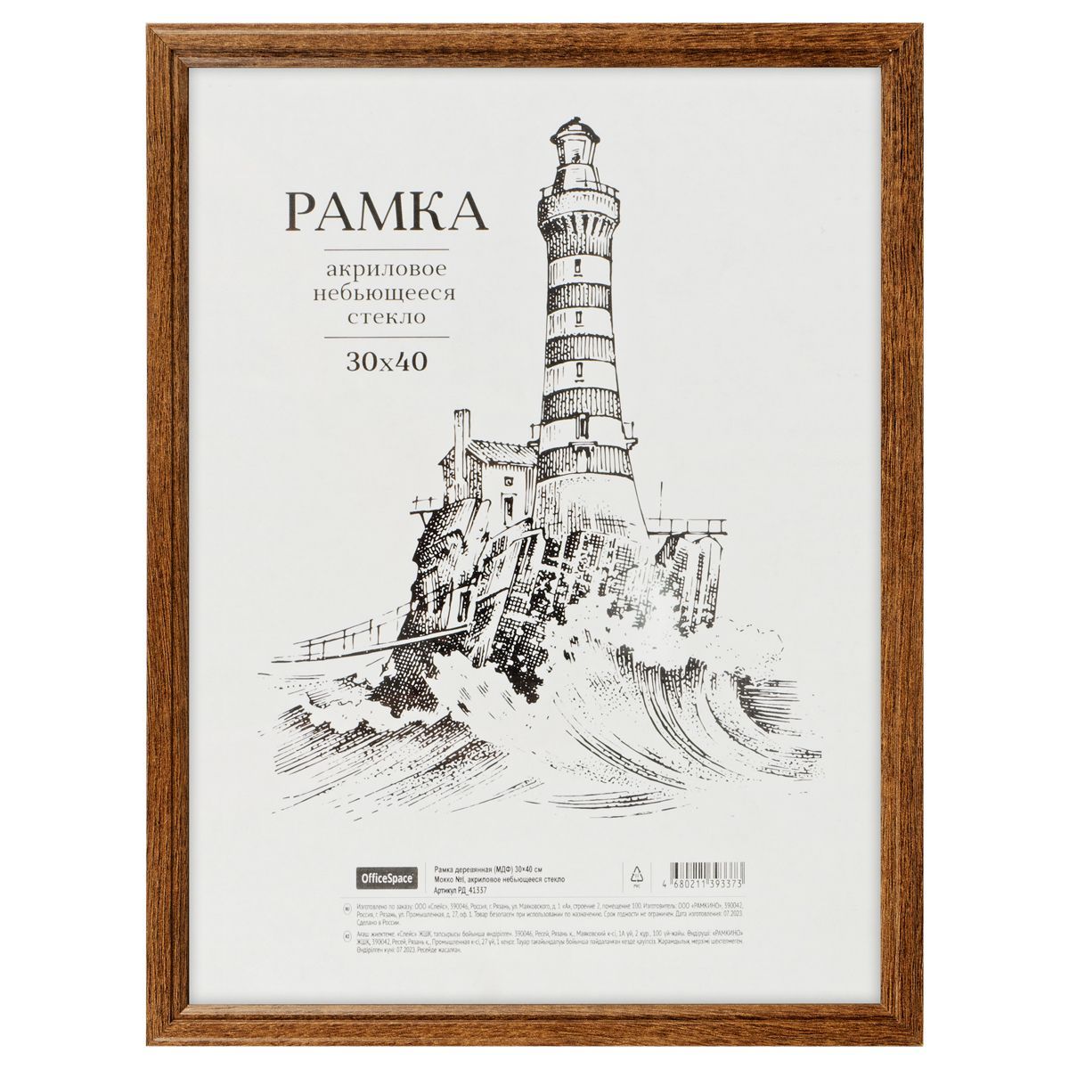 Рамка деревянная (МДФ) 30*40см, OfficeSpace, №1, акриловое небьющееся стекло, мокко