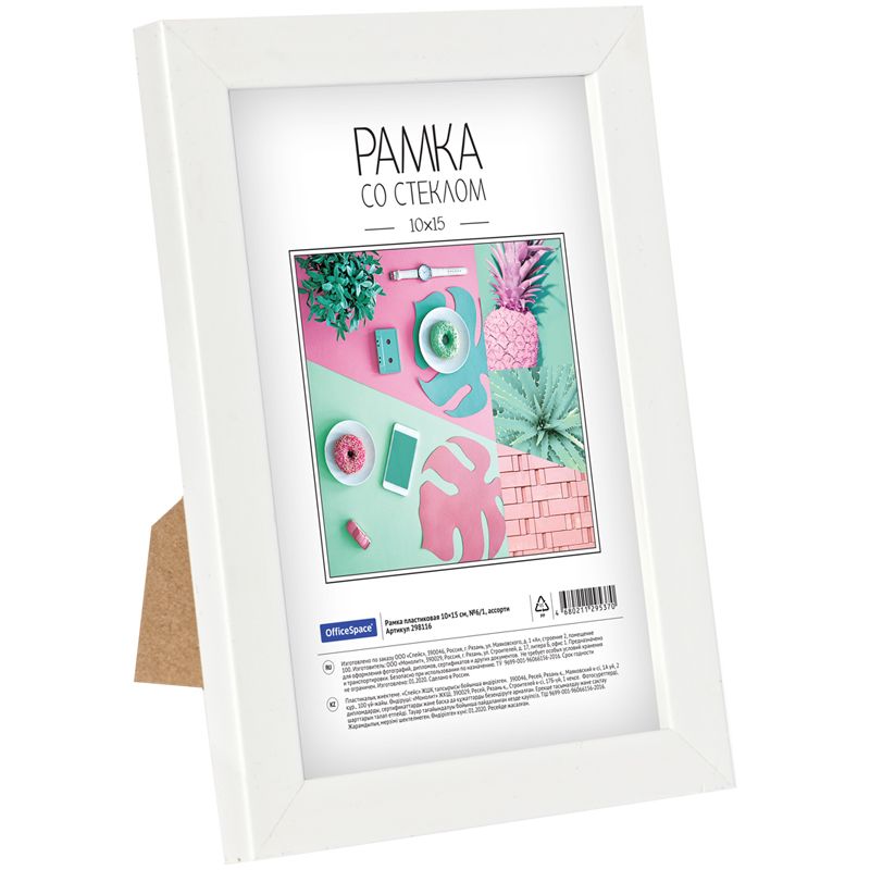 Рамка пластиковая 10*15см, OfficeSpace, №6/1, ассорти (черный, белый, розовый, мятный)