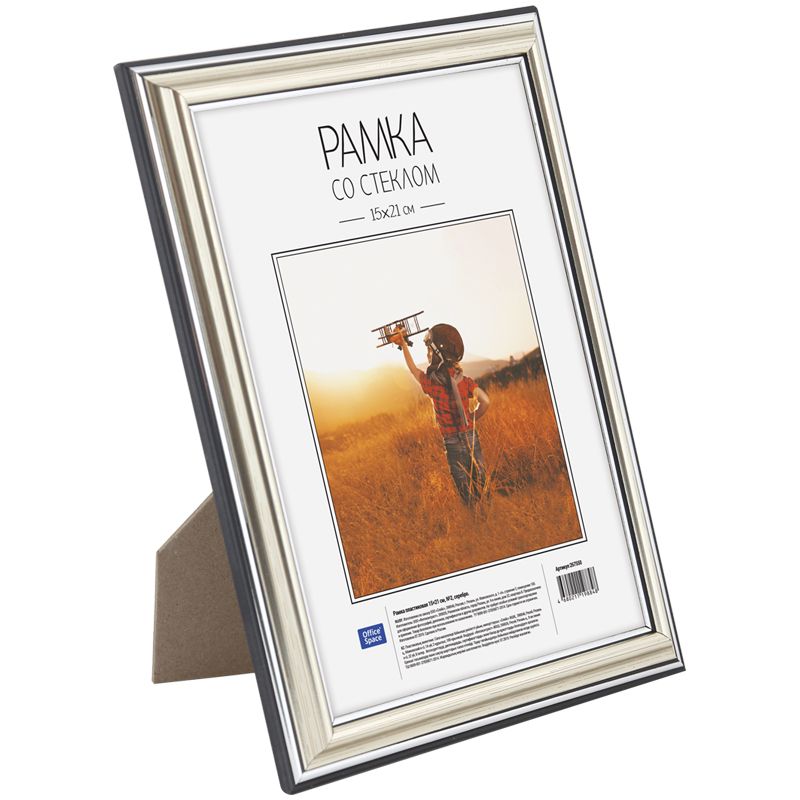 Рамка пластиковая 15*21см, OfficeSpace, №2, серебро