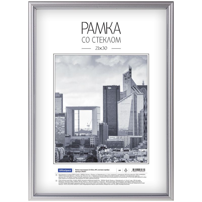 Рамка пластиковая 21*30см, OfficeSpace, №5, матовое серебро