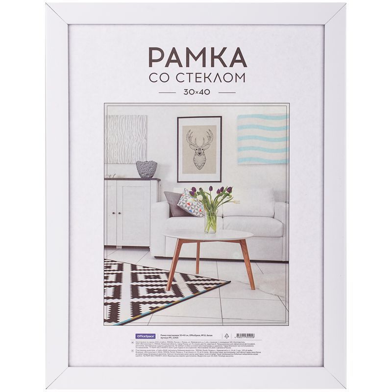 Рамка пластиковая 30*40см, OfficeSpace, №10, белая