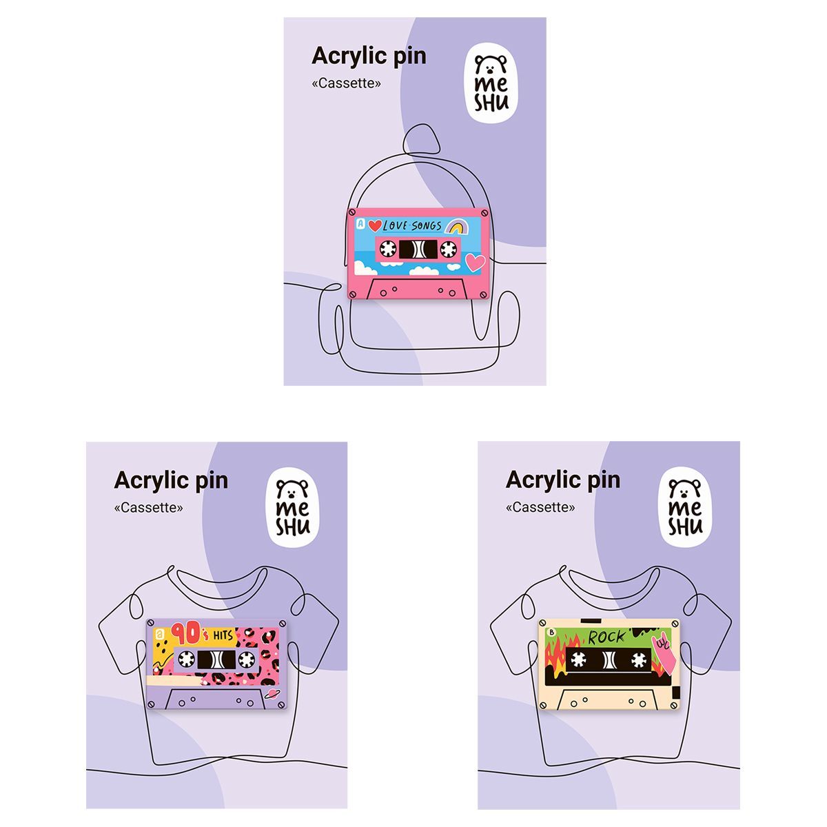 Набор акриловых значков MESHU "Cassettes", прямая УФ-печать, 3шт.