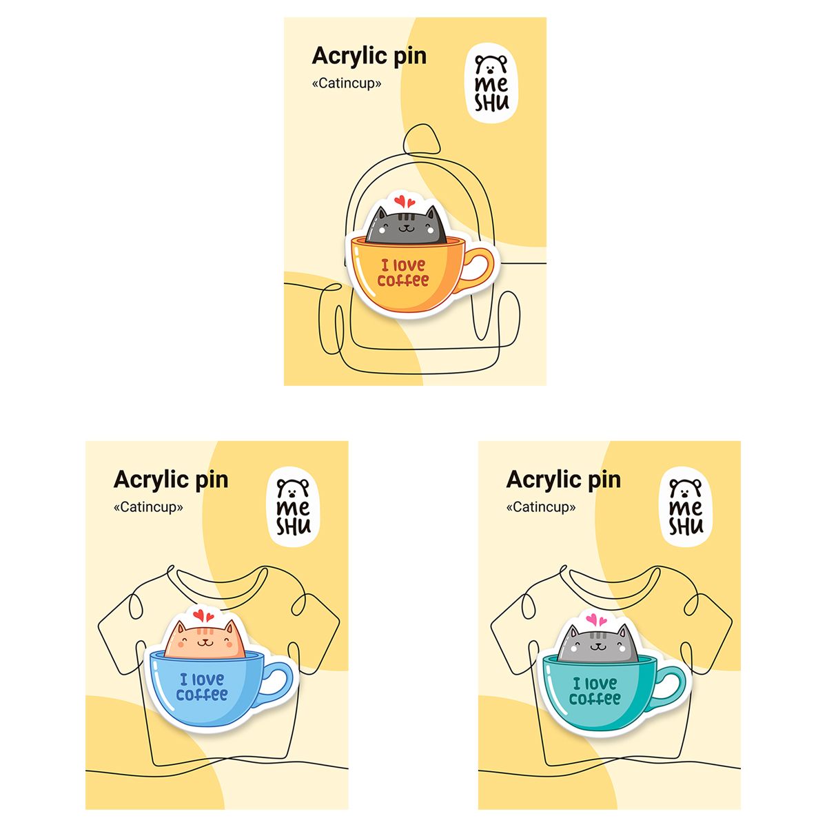Набор акриловых значков MESHU "Catsincups", прямая УФ-печать, 3шт.